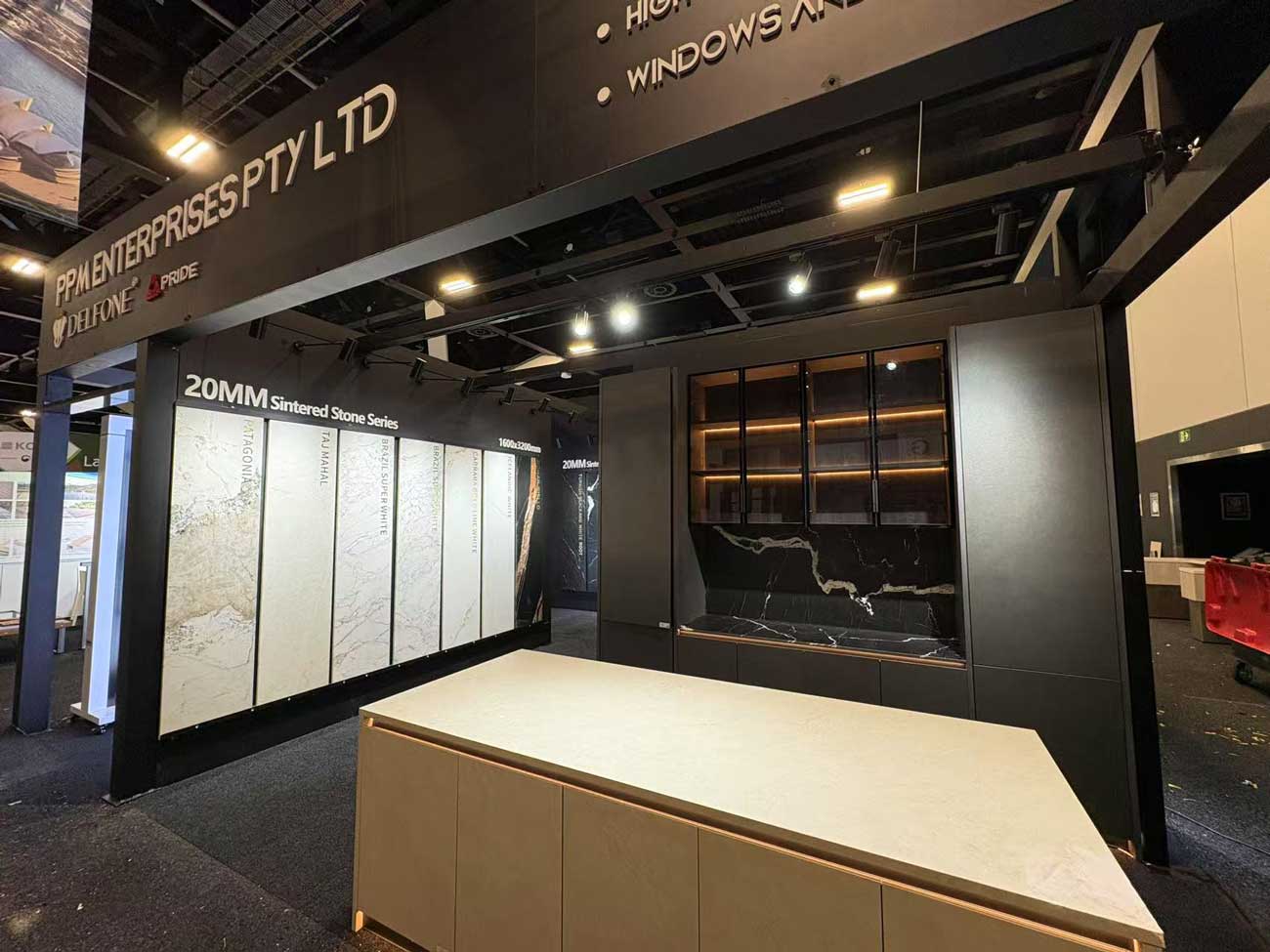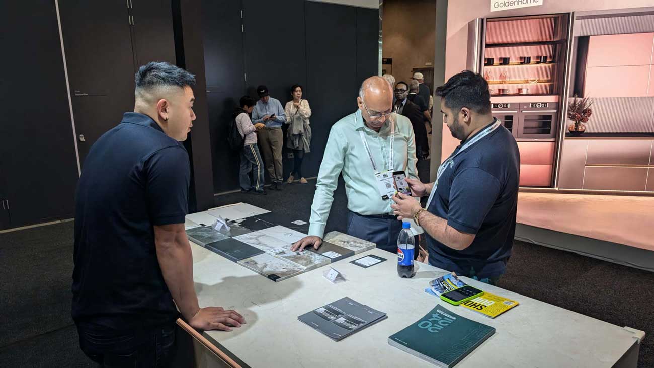 PPMStone presented real-life applications, from seamless splashbacks to expansive feature walls, effectively turning our booth into a walk-in showroom. The tactile experience of touching, feeling, and walking through the materials elevated our presence far beyond a simple product pitch—it became an immersive design experience.