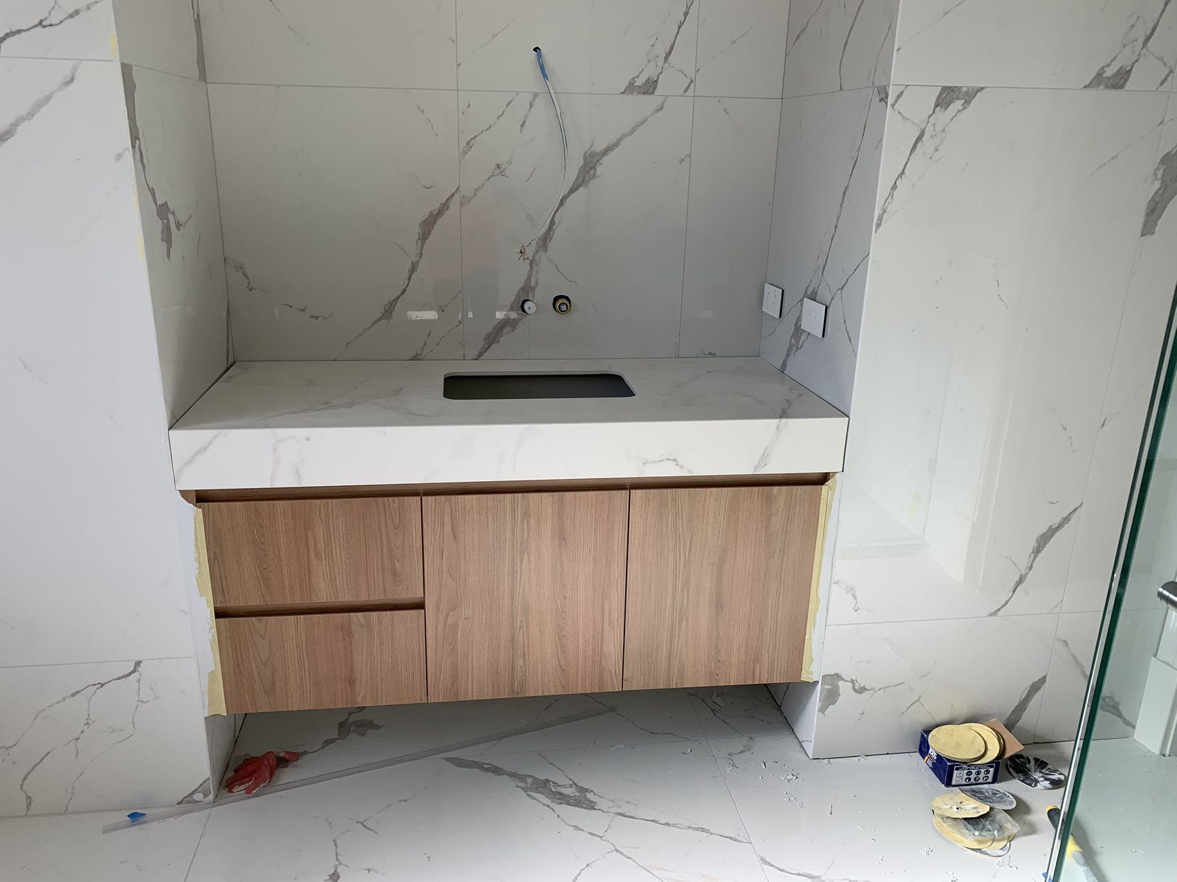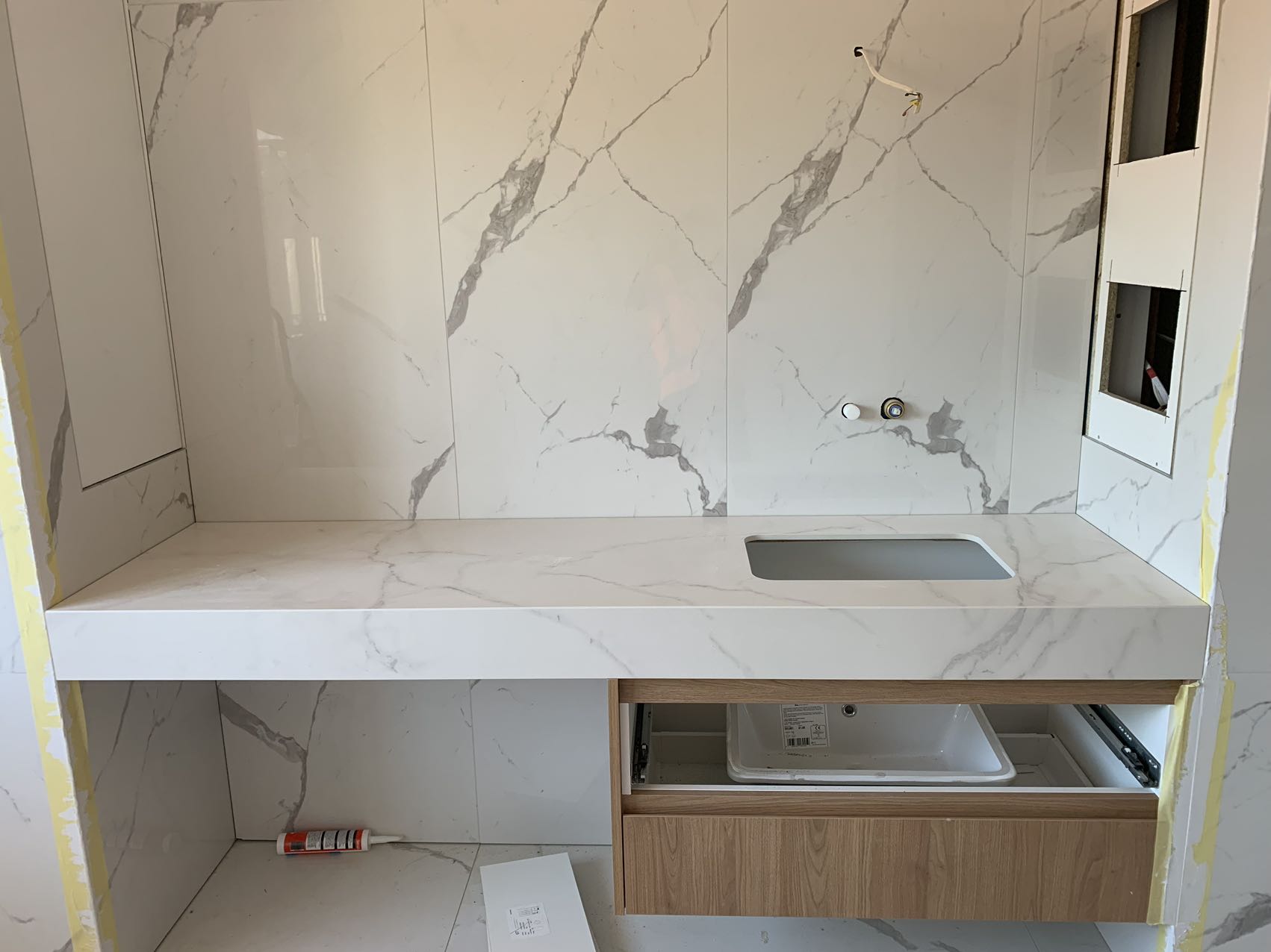 In our recent project, we had the privilege of installing PPM Stone Porcelain Panels to create breathtaking transformations in kitchen, vanity, and laundry spaces. With meticulous precision, we seamlessly integrated these panels into the existing layout, delivering stunning results that combine elegance, functionality, and durability.