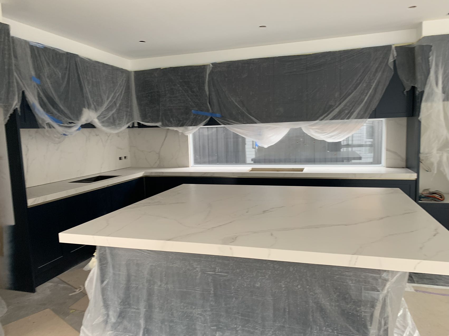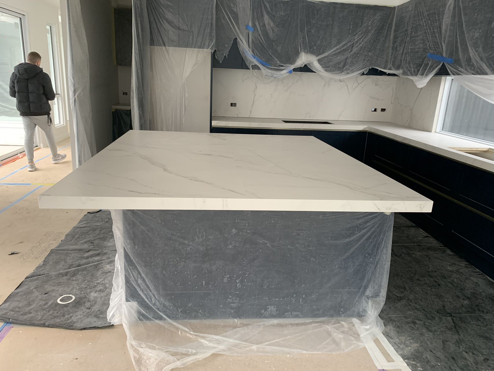 Our team skillfully installed PPM Stone Porcelain Panels to the kitchen benchtops, including captivating island benches and waterfalls. The panels effortlessly blended with the overall design, adding a touch of sophistication and visual appeal. The seamless integration enhanced both the aesthetics and practicality of the kitchen, creating a space that is both inviting and functional.